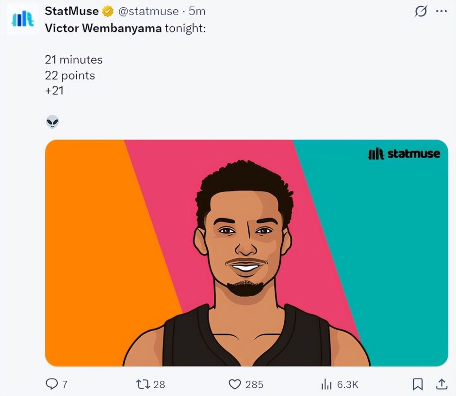 赛后马刺记者Matt Guzman表示:文班亚马就是李阿敏前五的球员,他在有极限登场时间限制的杯赛半决赛都可以正负值超过20+,你们觉得呢?