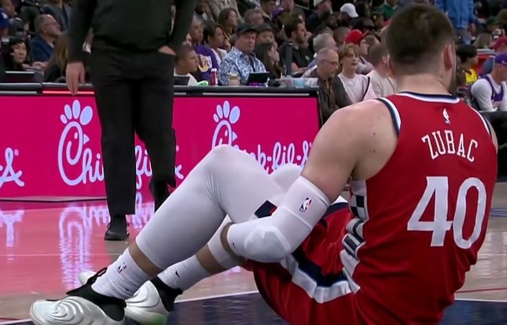 从慢动作回放来看,当时祖巴茨与队友进行挡拆配合,接球后抛投不中,而他在落地后,踩到了詹姆斯的脚上。祖巴茨痛苦倒地,随后也没有参与快船队的回防,裁判叫停比赛之后,东契奇从前场跑回来询问祖巴茨伤情,之后与大洛佩斯一起将祖巴茨搀扶起来。